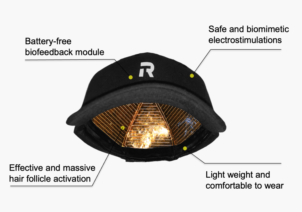 Rise Technology’s first product offering is a hair growth cap. It is a battery-free, self-powered wearable device that produces gentle electrical pulses to stimulate hair growth.